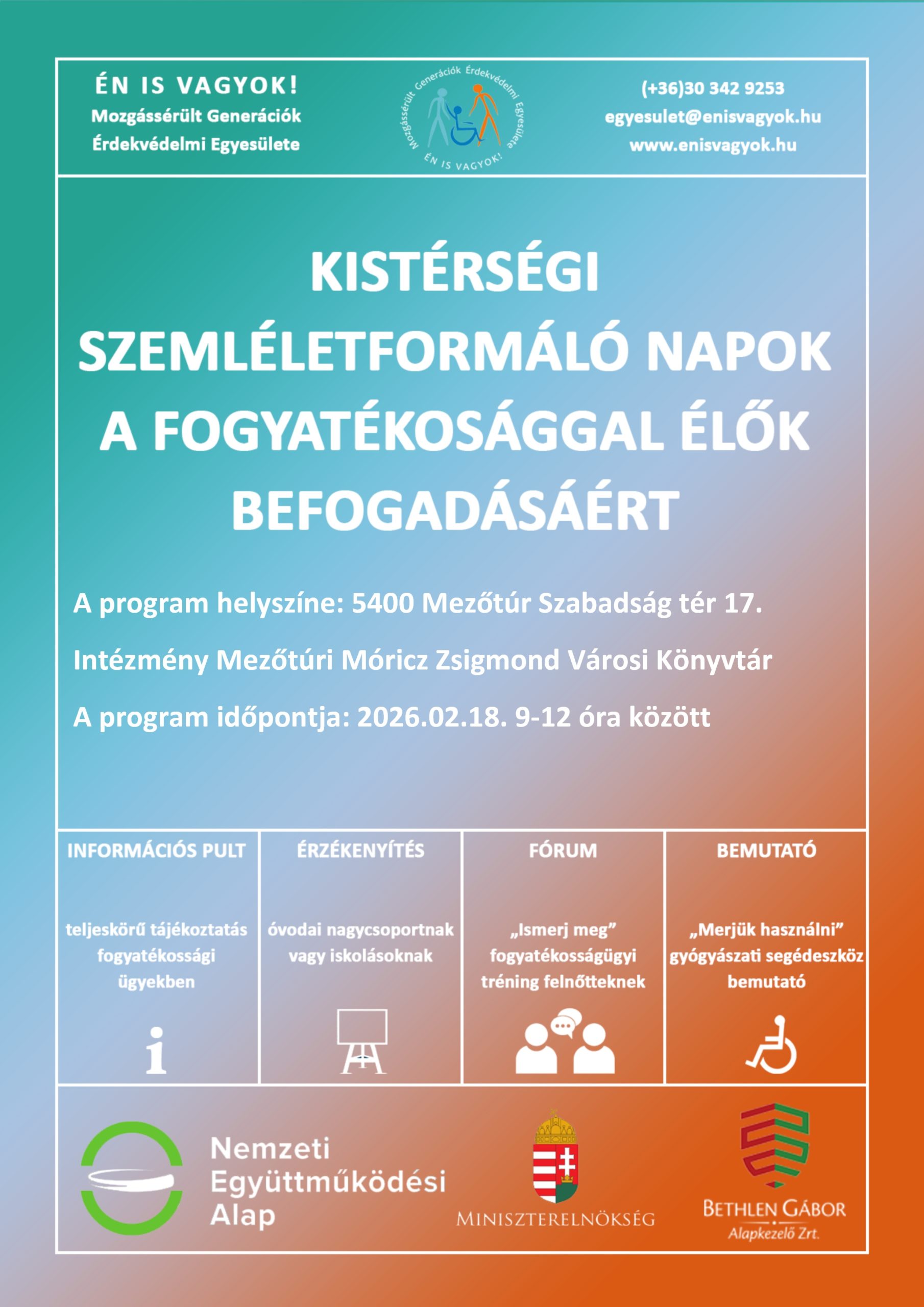 KISTÉRSÉGI SZEMLÉLETFORMÁLÓ NAPOK A FOGYATÉKKAL ÉLŐK BEFOGADÁSÁÉRT